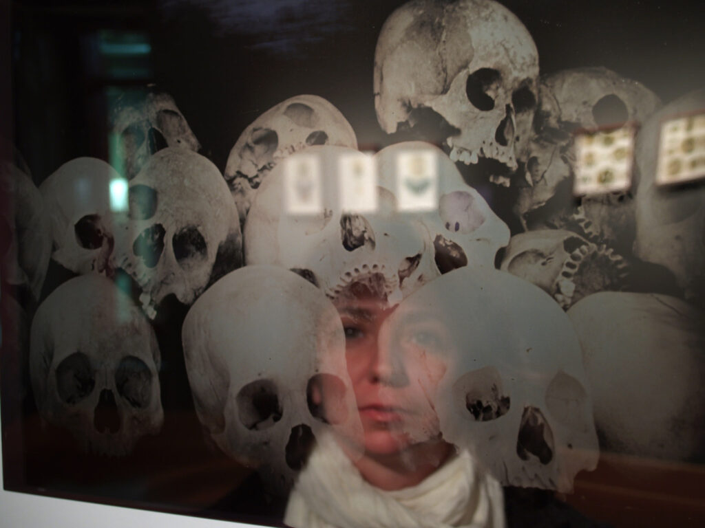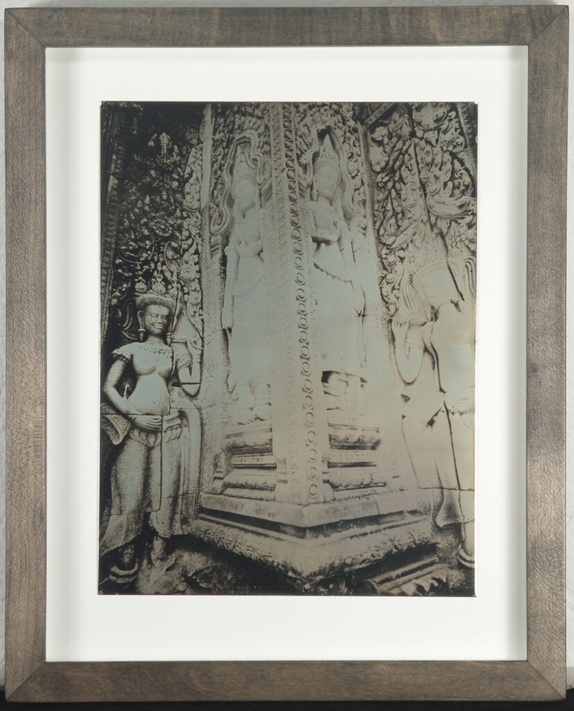 As in his earlier series Ancestral Altars (Haines Gallery, 2006), Danh revisits the tragic history of the Khmer Rouge regime (1975–79), during which an estimated two million Cambodians perished through execution, torture, starvation, and forced labor at sites such as Tuol Sleng and Choeung Ek. He juxtaposes this period of darkness with imagery of ancient Khmer temples at Angkor, built between the 9th and 15th centuries CE. These temples are adorned with intricate carvings and mythology dedicated to Buddhist and Hindu deities—among them, Rahu, the snake god who swallows the sun or moon, causing eclipses. It is in this very region of northern Cambodia that the Khmer Rouge first emerged, casting a long historical and symbolic shadow over the land.